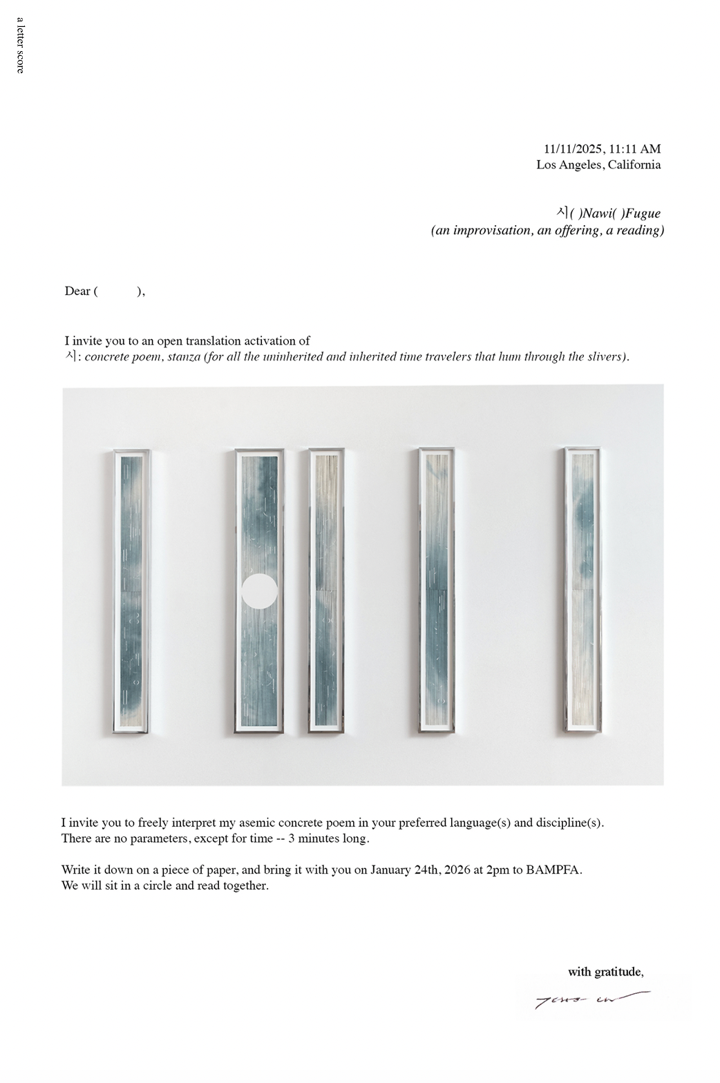 letter score, invitation for open translation