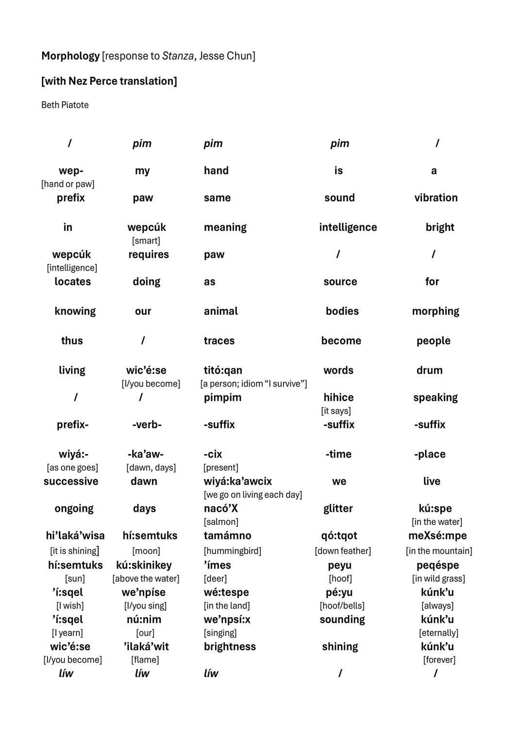 poem/open translation by Beth Piatote