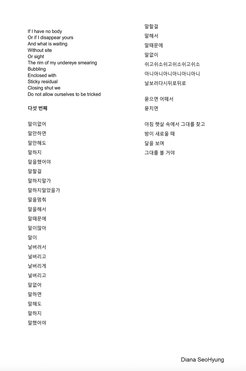 poem/open translation by Diana SeoHyung
